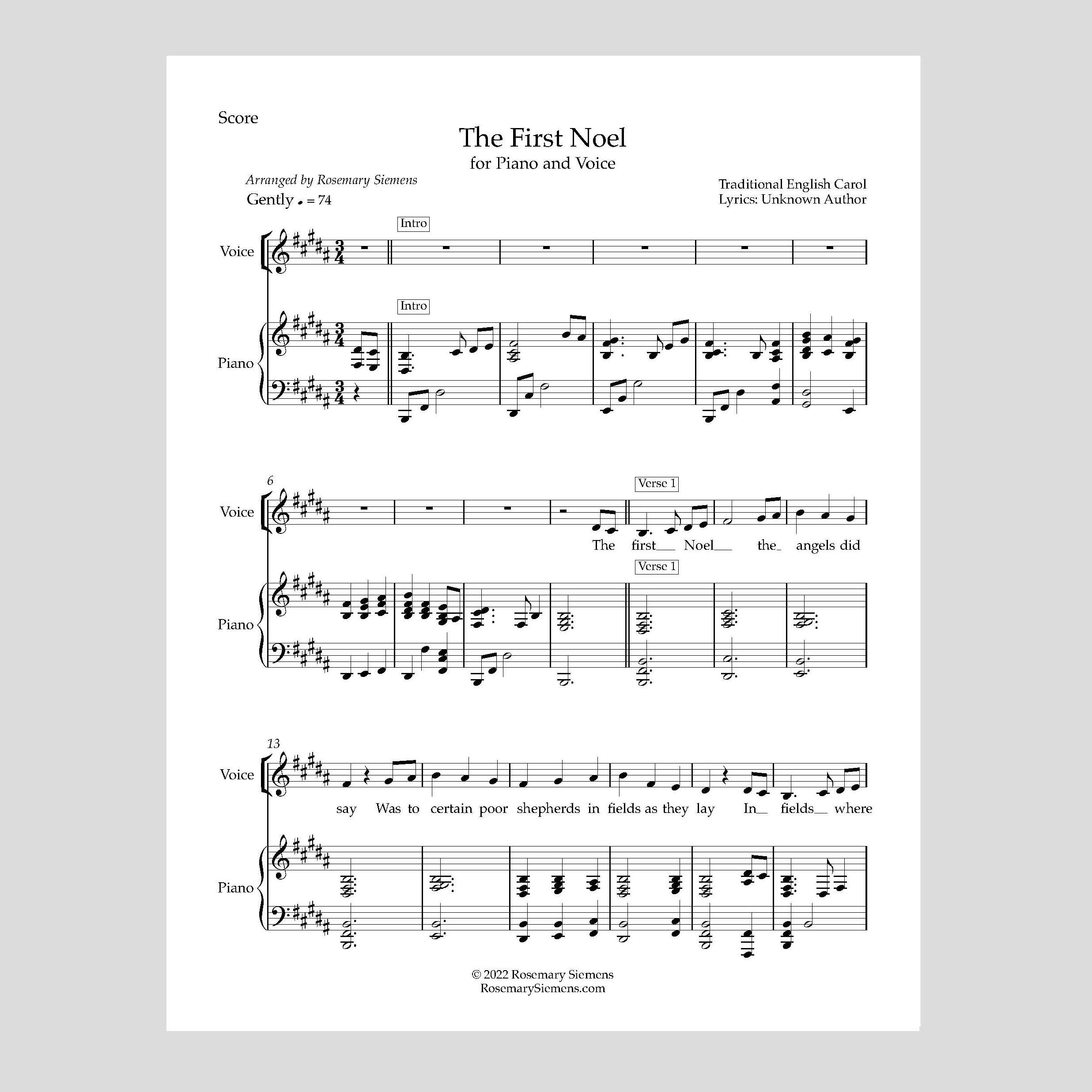 The First Noel digital sheet music by Rosemary Siemens. The downloadable/printable PDF contains the piano sheet music.